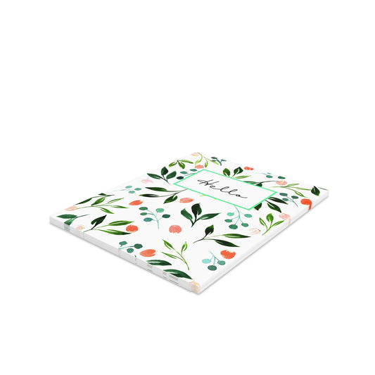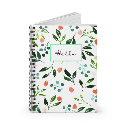 Green Floral "Hello" Spiral Notebook - Ruled Line